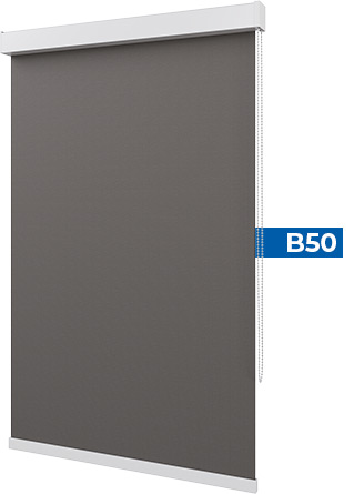 A 2,5 m szélességig terjedő felületekre tervezett B50 tokozott rendszer minden szempontból kényelmes választás. Lehetővé teszi a falra, mennyezetre vagy az ablakmélyedésbe történő szerelést, kis méretű tokja pedig finoman illeszkedik bármilyen belső térbe.